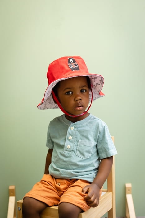 Kapelusz do kolorowania FlapJack wykonany jest w 100% z bawełny. Nie tylko pięknie się prezentuje na dziecięcej główce i zapewnia maluchowi fantastyczną zabawę podczas kolorowania, ale także gwarantuje maksymalną ochronę głowy przed słońcem. Jego filtr UPF 50+ blokuje 98% promieni UV, a szerokie rondo osłania dodatkowo twarz, uszy i kark dziecka. Paski podbródkowe sprawiają, że kapelusz do kolorowania nie zsuwa się z głowy malucha. Przekładając go na drugą stronę, paski także łatwo przełożymy, dzięki czemu dwustronny kapelusz nie straci swej funkcjonalności niezależnie od tego, który wzór danego dnia wybierzemy!