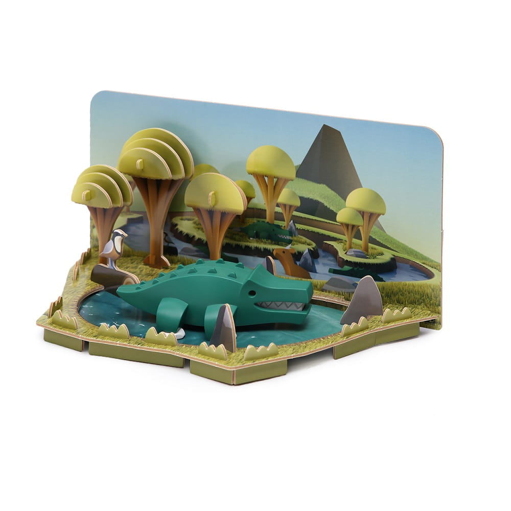 Zielony krokodyl składa się z 6 części - 2 x magnetyczne połówki i 4 x elementy szkieletu. Krokodyl jest częścią serii zwierząt wśród nich słoń, hipopotam, lew, które można kolekcjonować. Do każdego zwierzątka dołączona jest inna makieta. Makiety można ze sobą łączyć w jedną całość.