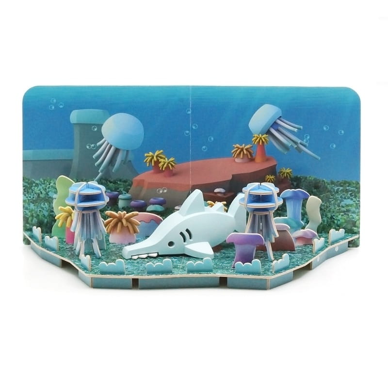 Magnetyczna Składana Ryba Piła to pięknie zaprojektowany rekin, z realistycznym szkieletem do ułożenia pod magnetyczną skorupą. Interaktywne magnesy utrzymują zewnętrzną warstwę razem, oraz szkieletową układankę 3D, która zapewnia edukacyjną i poznawczą zabawę. Do każdego zestawu dołączona jest makieta z tłem podmorskiego życia i meduzami, którą samodzielnie się składa.