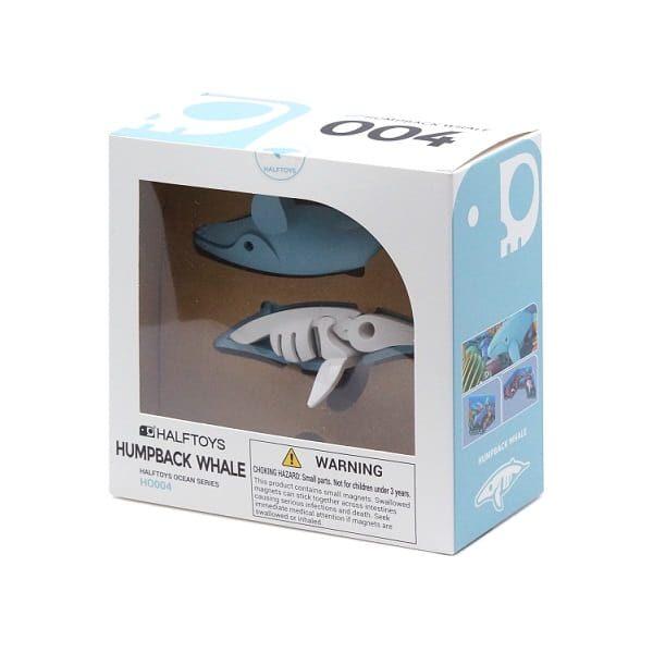 Wieloryb Humbak składa się z 5 części - 2 x magnetyczne połówki i 3 x elementy szkieletu. Wieloryb Humbak jest częścią serii oceanicznych zwierząt wśród nich biały rekin, wieloryb, żółw, samogłów, ryba piła, które można kolekcjonować. Do każdego zestawu dołączona jest inna makieta. Makiety można ze sobą łączyć w jedną całość.