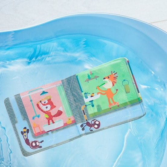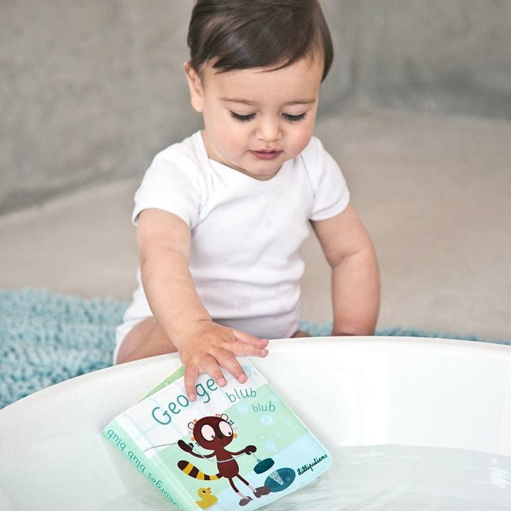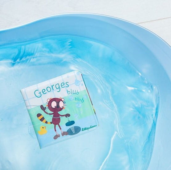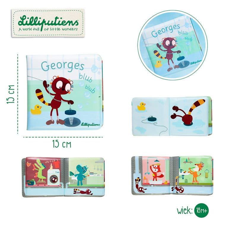 Książeczka do kąpieli z kolekcji Lemur George belgijskiej marki Lilliputiens, wykonana z miękkiego, łatwego do czyszczenia i szybkoschnącego materiału. Opowiada o niezwykłej podróży George'a, którą odbywa on rurami wodociągów po wskoczeniu do odpływu swojej wanny. Lemur obserwuje jak każde zwierzątko robi coś związanego z wodą: lisiczka Alice bierze prysznic, lew Jack myje zęby, krokodyl Anatol robi pranie, nosorożec Marius zmywa naczynia, żyrafa Zia myje samochód, a jednorożec Louise siedzi na toalecie! Dzięki lekturze książeczki dziecko dowiaduje się do czego jest nam potrzebna woda i jak możemy ją oszczędzać, rozwija spostrzegawczość i pobudza wyobraźnię. Książeczka jest perfekcyjnie wykończona, z dbałością o każdy szczegół i w pełni bezpieczna dla dziecka.