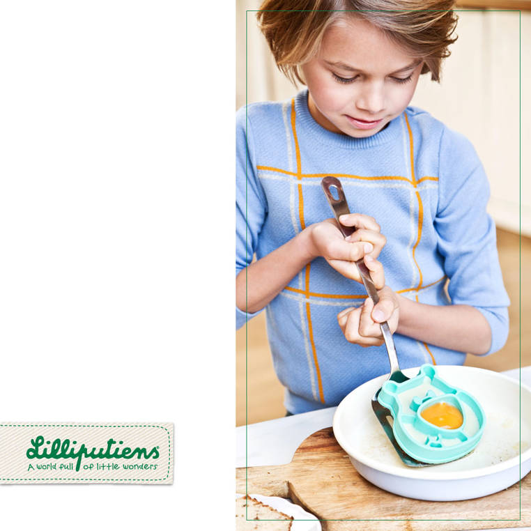 Forma do smażenia jajek z kolekcji Niedźwiadek Cesar belgijskiej marki Lilliputiens to idealne pierwsze narzędzie kuchenne małego miłośnika gotowania. Ma jasnoniebieski kolor i pozwala przyrządzić jajko sadzone w kształcie pyszczka Niedźwiadka Cesara – wystarczy umieścić żółtko w miejscu nosa, a białko – w pozostałej przestrzeni. Foremka została wykonana z trwałego, bezpiecznego i higienicznego silikonu spożywczego, można ją myć w zmywarce i jest odporna na temperatury w przedziale od 0 do 120°C. Ładna, poręczna i funkcjonalna – zachęca dziecko do zabawy w naśladowanie dorosłych i podejmowanie kulinarnych wyzwań, dzięki czemu uczy się samodzielności.