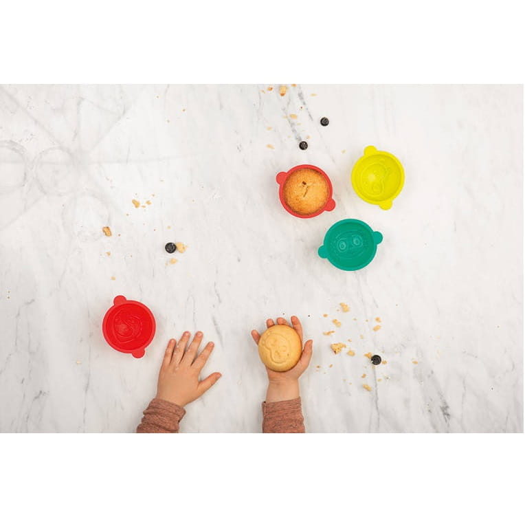 Zestaw 6 foremek do pieczenia z kolekcji Las belgijskiej marki Lilliputiens to idealne pierwsze narzędzie kuchenne małego miłośnika gotowania. Mają intensywne kolory: turkusowy, czerwony i seledynowy i pozwalają upiec małe babeczki z pyszczkami Niedźwiadka Cesara, Lisiczki Alice oraz ich przyjaciela z dżungli – Lemura Georga (po 2 foremki z każdą postacią). Foremki zostały wykonane z trwałego, bezpiecznego i higienicznego silikonu spożywczego, można je myć w zmywarce i są odporne na temperatury w przedziale od -20 do 220°C. Ładne, poręczne i funkcjonalne – zachęcają dziecko do zabawy w naśladowanie dorosłych i podejmowanie kulinarnych wyzwań, dzięki czemu uczy się samodzielności.