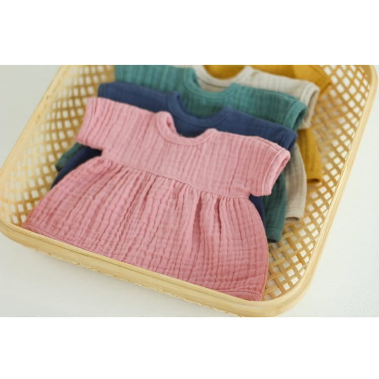 Ręcznie uszyta sukienka z delikatnego muślinu bawełnianego typu double gauze. Ubranko posiada rozcięcie z tyłu na całej długości i zapinane jest na bezpieczne napy. Maluszek ubierając swoją laleczkę będzie dzielnie trenować małą motorykę.