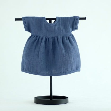 Ręcznie uszyta sukienka z delikatnego muślinu bawełnianego typu double gauze. Ubranko posiada rozcięcie z tyłu na całej długości i zapinane jest na bezpieczne napy. Maluszek ubierając swoją laleczkę będzie dzielnie trenować małą motorykę.
