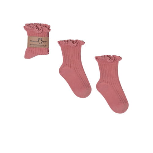 prążkowanych skarpetek wykończonych bawełnianą koronką w kolorze skarpetki. Jest to