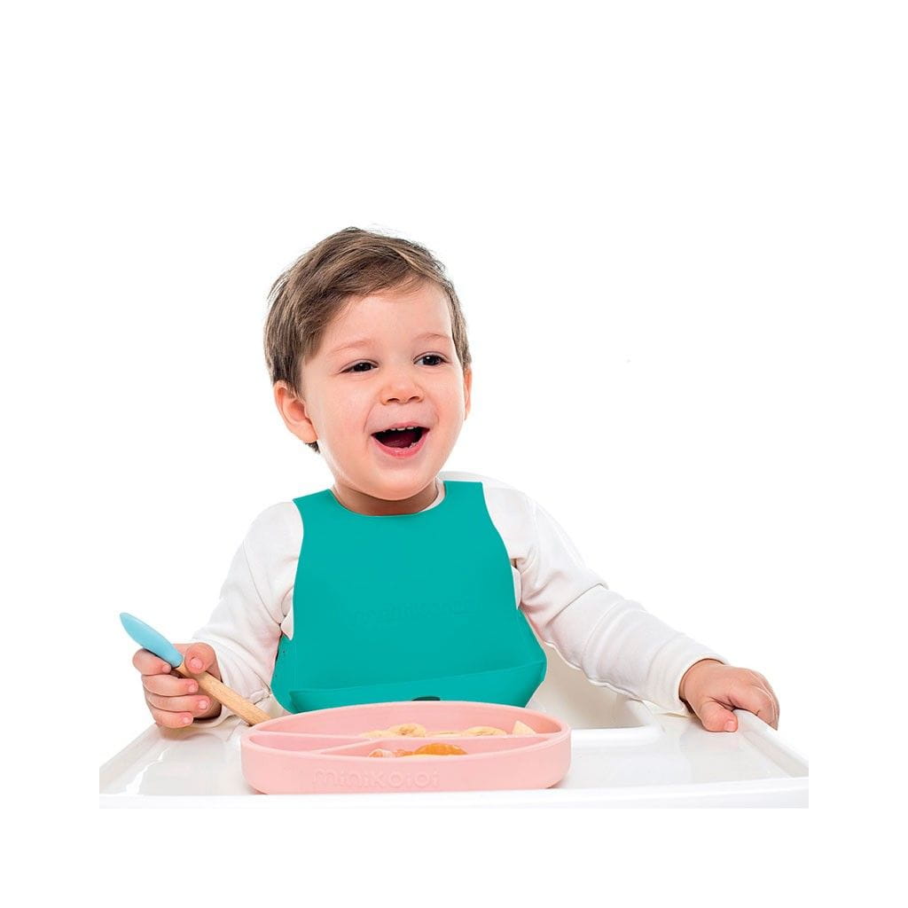 Silikonowy śliniak MINIKOIOI dzięki unikalnej konstrukcji zapinany jest na plecach dziecka. Dzięki temu nie przesuwa się wokół szyi, a dziecko nie odczuwa dyskomfortu i nie próbuje go ściągać. Miękki i elastyczny silikon pozwala złożyć śliniak do rozmiarów klasycznego materiałowego. Dzięki regulowanym szelkom śliniak rośnie wraz z dzieckiem i może być używany od 6. miesiąca do 4. roku życia dziecka.